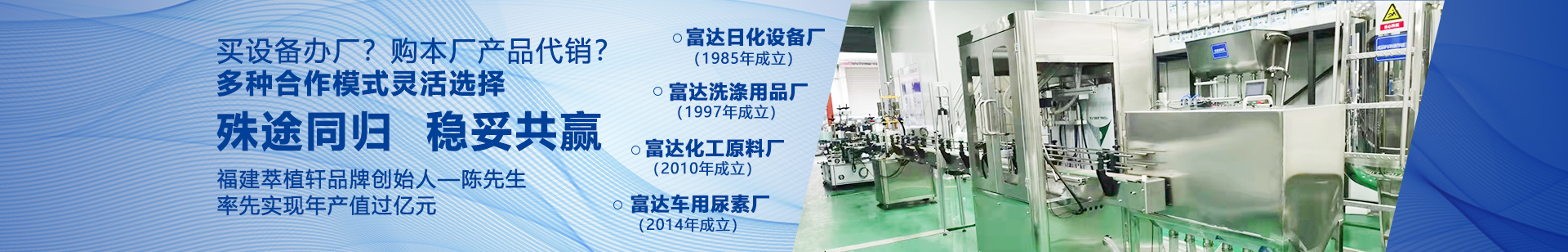 我廠主要生產(chǎn)洗潔精洗衣液等洗滌產(chǎn)品設備,洗發(fā)水沐浴露洗手液等化妝品設備,肥皂香皂生產(chǎn)設備,洗衣粉生產(chǎn)設備等40多種類型的相關設備,同時生產(chǎn)銷售相關化工原料及日化產(chǎn)品,并提供相關產(chǎn)品技術支持,公司有富達、生態(tài)凈瀑、潔莉寶貝、綠草凈,小流彈等日化行業(yè)相關的105個注冊商標,30多年一直走來,實屬不易,無論是設備還是日化產(chǎn)品技術,都經(jīng)過了更新?lián)Q代,積淀了一些經(jīng)驗,也許對您有所幫助。